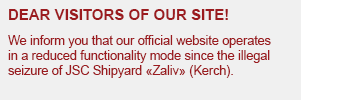 August 24, 2014 some persons who call themselves representatives of LLC "Shipyard "Zaliv" (Moscow), with the support of the so-called" Self-defense of the Crimea ", carried out the acquisition by seizure of the territory, administrative and industrial buildings of the Shipyard, coupled with illegal entry into the room, where was a storage of foundation, title, accounting and other documents, seals and stamps of the Shipyard. Currently, representatives of the legitimate government of Joint Stock Company are not allowed to perform their functions, completely blocked manufacturing, financial, economic activities of the Enterprise.