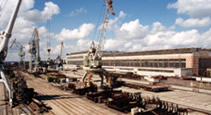 и пятью портальными кранами грузоподъемностью 80 т каждый. Крановое оборудование позволяет формировать корпуса судов из крупных секций и блоков весом до 600 т.