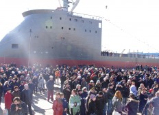 Торжественный вывод судна из дока собрал не только заводчан. Разделить с «Заливом» его производственный праздник решили и первые лица крымской автономии, в частности, и.о.Председателя Совета Министров АРК П.Бурлаков высоко оценивший многомесячную напряженную работу коллектива завода.