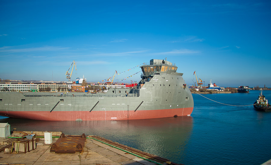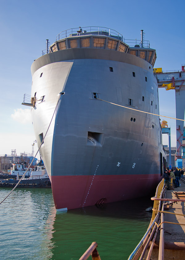 По словам главного строителя завода Василия Касьяненко, качественным исполнением работ «Залив» завоевывает все большее доверие у заказчика, что подтверждается получением дополнительного объема работ по насыщению корпуса. В частности «Заливом» выполнен весь, необходимый для данного проекта, объем работ по изготовлению и монтажу систем трубопроводов, около 100 т. Установлены в состав корпуса швартовно-якорная лебедка, гидростанции и система кондиционирования воздуха.